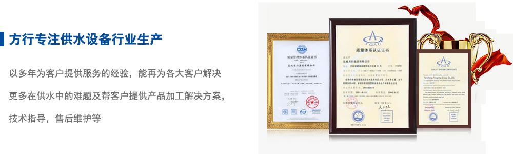 鹽城方行集團(tuán)有限公司秉承“務(wù)實(shí)、誠信、拼搏、創(chuàng)新”的企業(yè)精神,經(jīng)歷了近數(shù)十年的歷程取得了跨越式的發(fā)展。高起點(diǎn)才會有更高的品質(zhì),優(yōu)雅的環(huán)境,先進(jìn)的設(shè) 備,高效的團(tuán)隊(duì),造就了一批批優(yōu)質(zhì)的產(chǎn)品。堅(jiān)持質(zhì)量、用戶至上的宗旨,公司全面通過了ISO國際質(zhì)量體系認(rèn)證,是制造供水成套設(shè)備廠家 之一。經(jīng)悉心打造,已享有較高的知名度,產(chǎn)品遍布全國,不斷研發(fā)全新產(chǎn)品,滿足消費(fèi)者的需求 | |